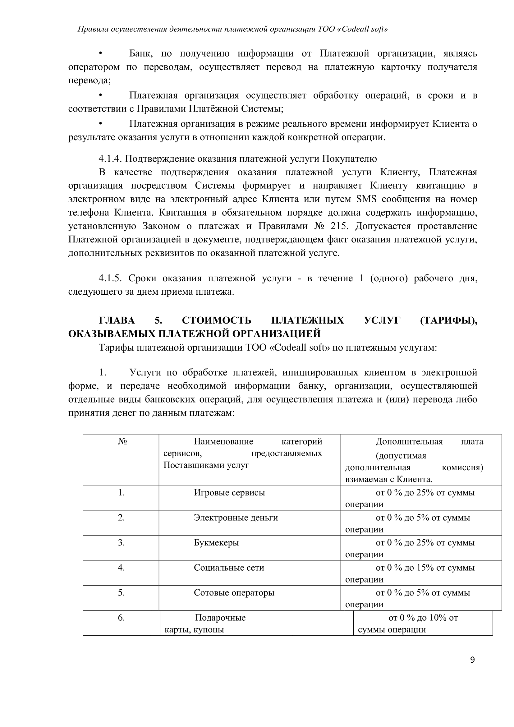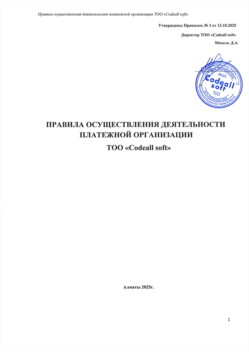 Платежная организация: ТОО «Codeall soft»